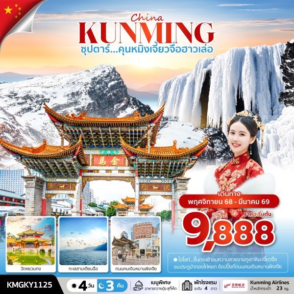 วันที่สาม OPTION: พิชิตยอดเขาซีซาน (รวมรถแบตเตอรี่) ราคา 1,000 บาท/ท่าน - หม่าหยวนมิเตอร์เกจ - ร้านหยก - สวนน้ำตกคุนหมิง